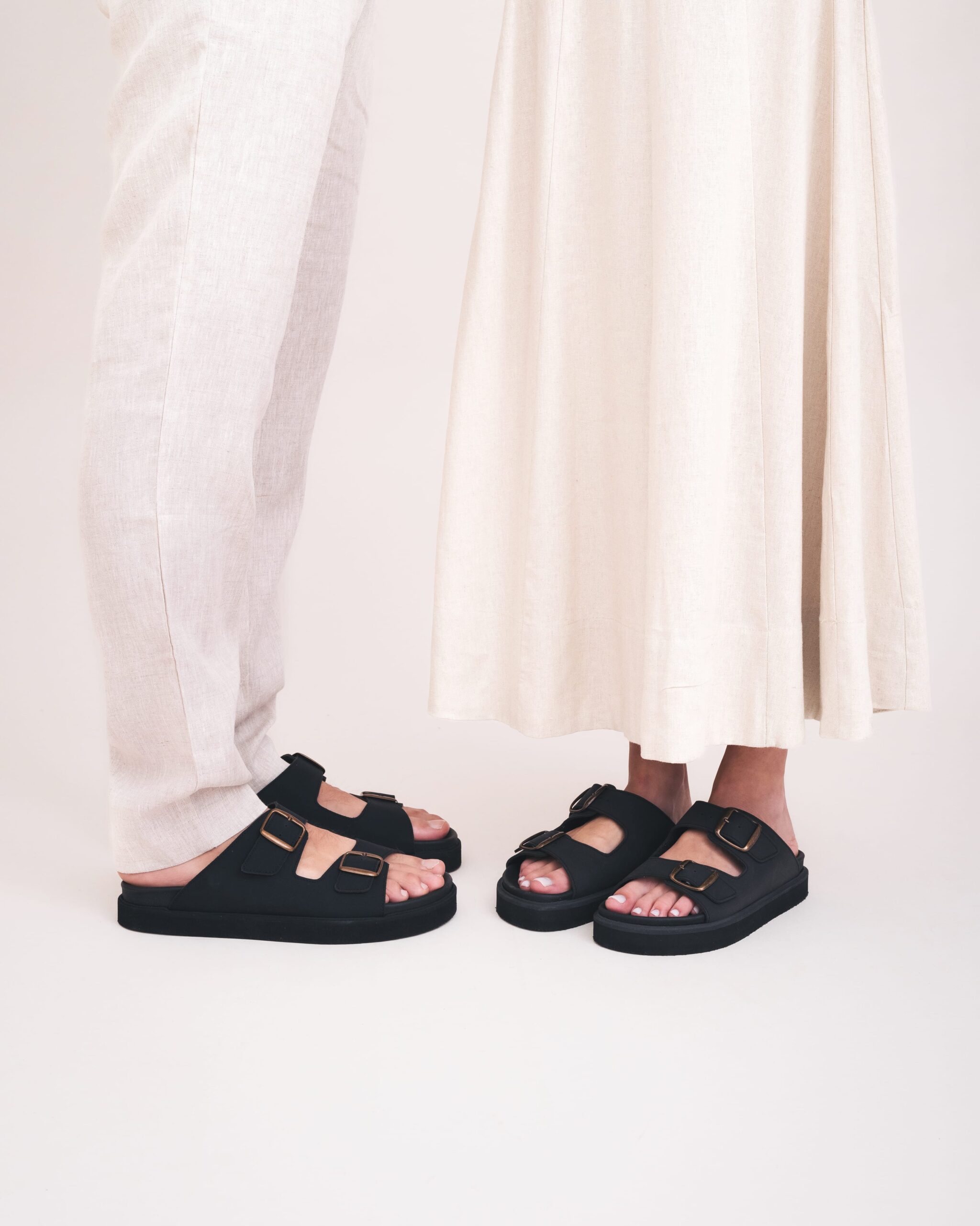 Darku is a modern vegan platform sandal designed for everyday ease. Made in Spain with clean lines and adjustable buckles, it offers stability, comfort, and a bold yet minimal silhouette. A versatile summer essential crafted with durable vegan materials.
