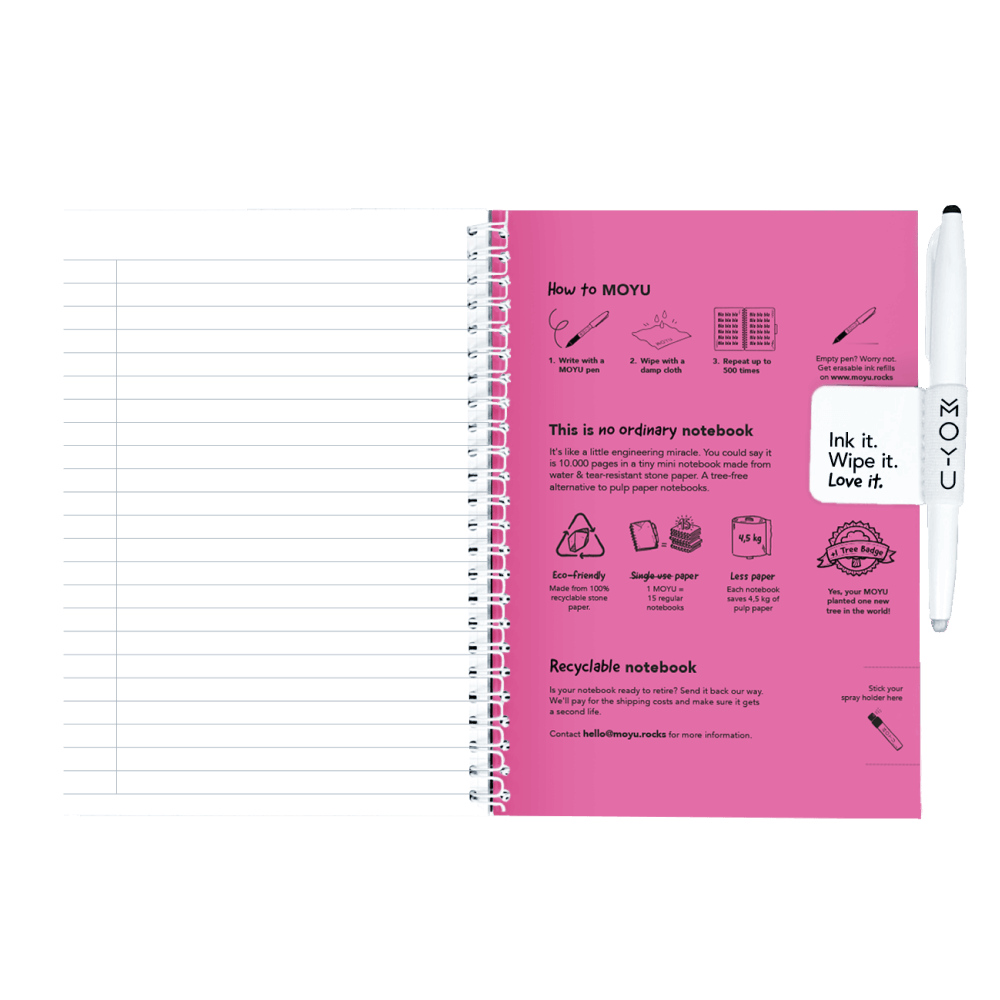 A bright passion-inspired agenda cover to experience the magic of erasable writing on water & tear resistant pages made from 100% recyclable stone paper.