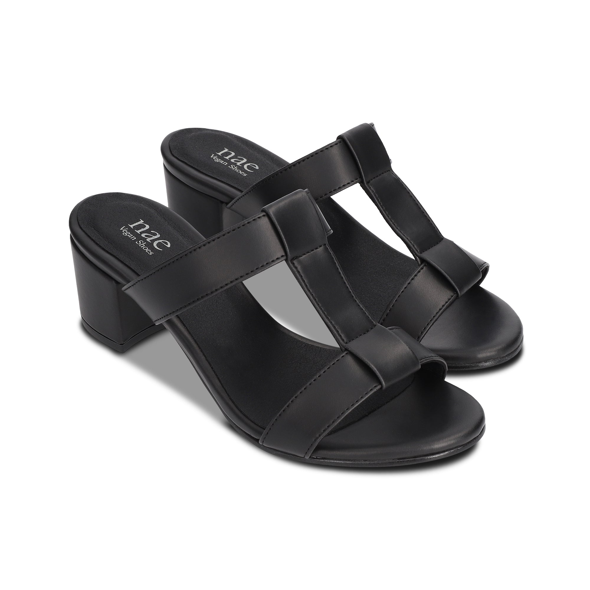 Introducing Iris Black: high-heeled sandals with T-shaped straps, meticulously crafted from Apple Leather—an eco-friendly material derived from recycled residues of apple juice production. Shop these vegan sandals online for a sustainable, cruelty-free alternative to traditional leather.
