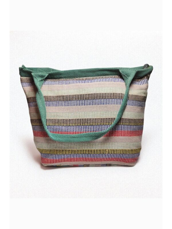 Our Prapti side bag is made of organic cotton, which makes a strong and durable fabric. This bag is entirely handmade, from weaving the fabric to making the bag. Each bag is unique in its colors. The bag can be closed with a high quality zipper. The inside of the bag is provided with an extra compartment, also to be closed with a zipper. This will make sure all your belongings are safe. A comfortable and one of a kind bag, perfect on your day out.