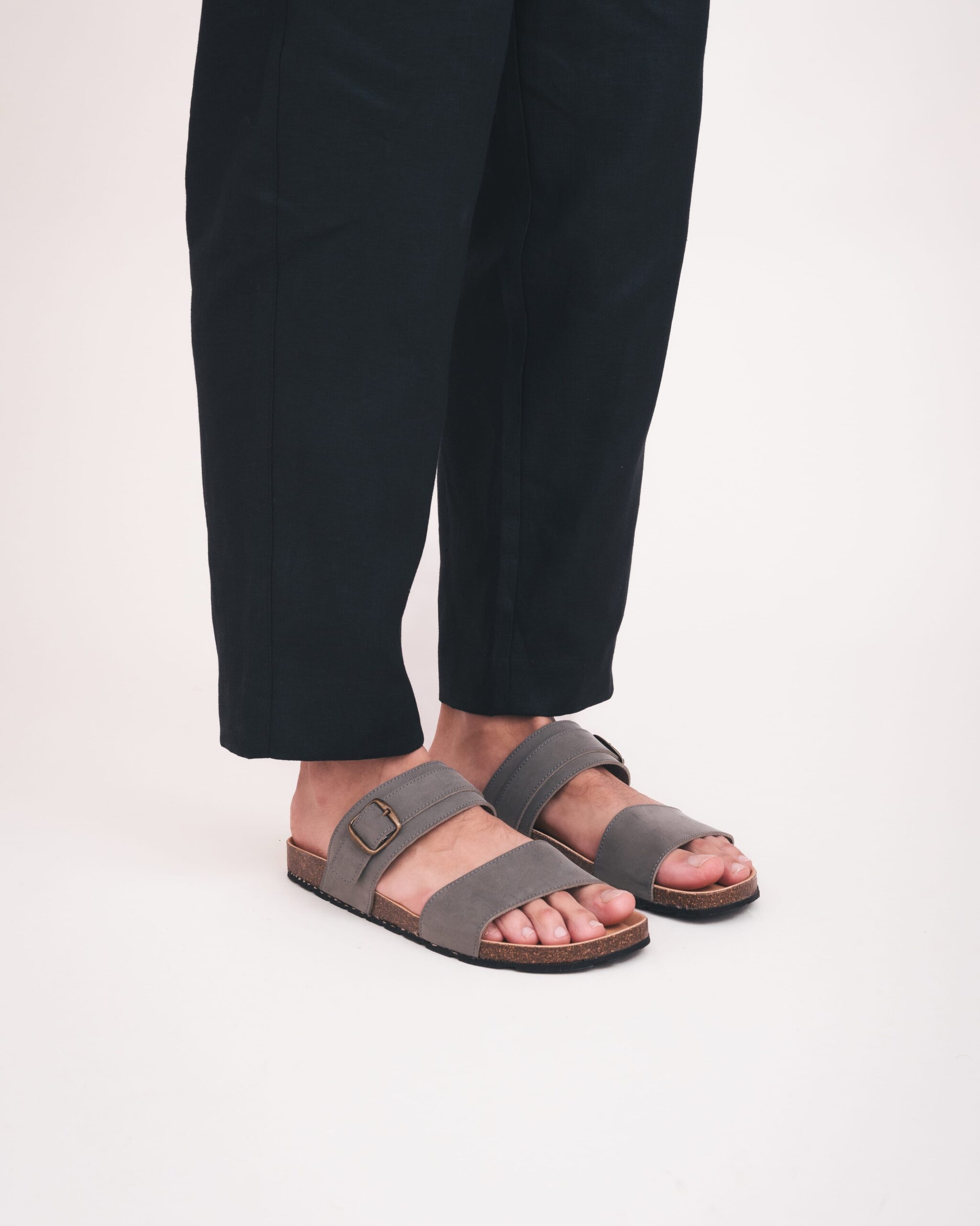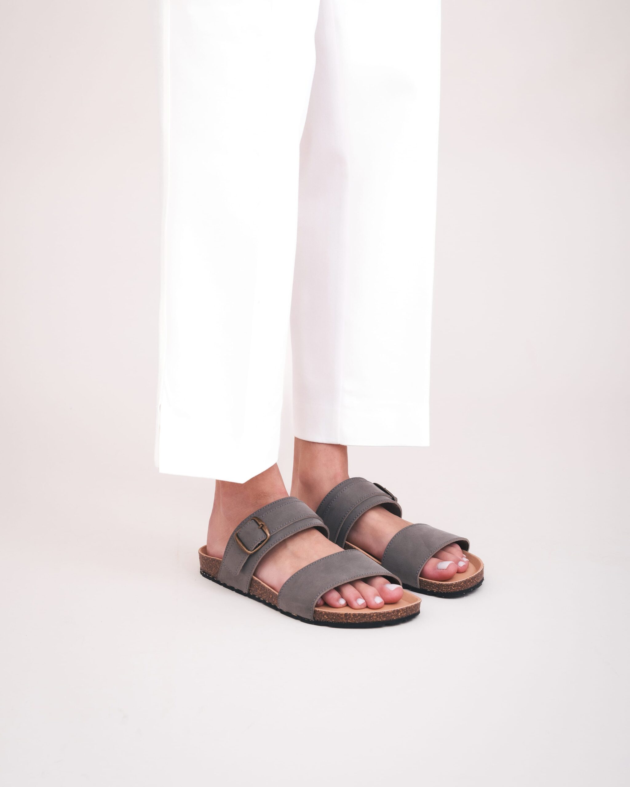 Rawa is a minimalist vegan sandal designed for everyday ease. Made in Spain with recycled car tyre soles, a natural cork insole and a soft nubuck-style vegan upper. The clean, fixed-strap design ensures a comfortable slip-on fit with durability and a conscious summer look.