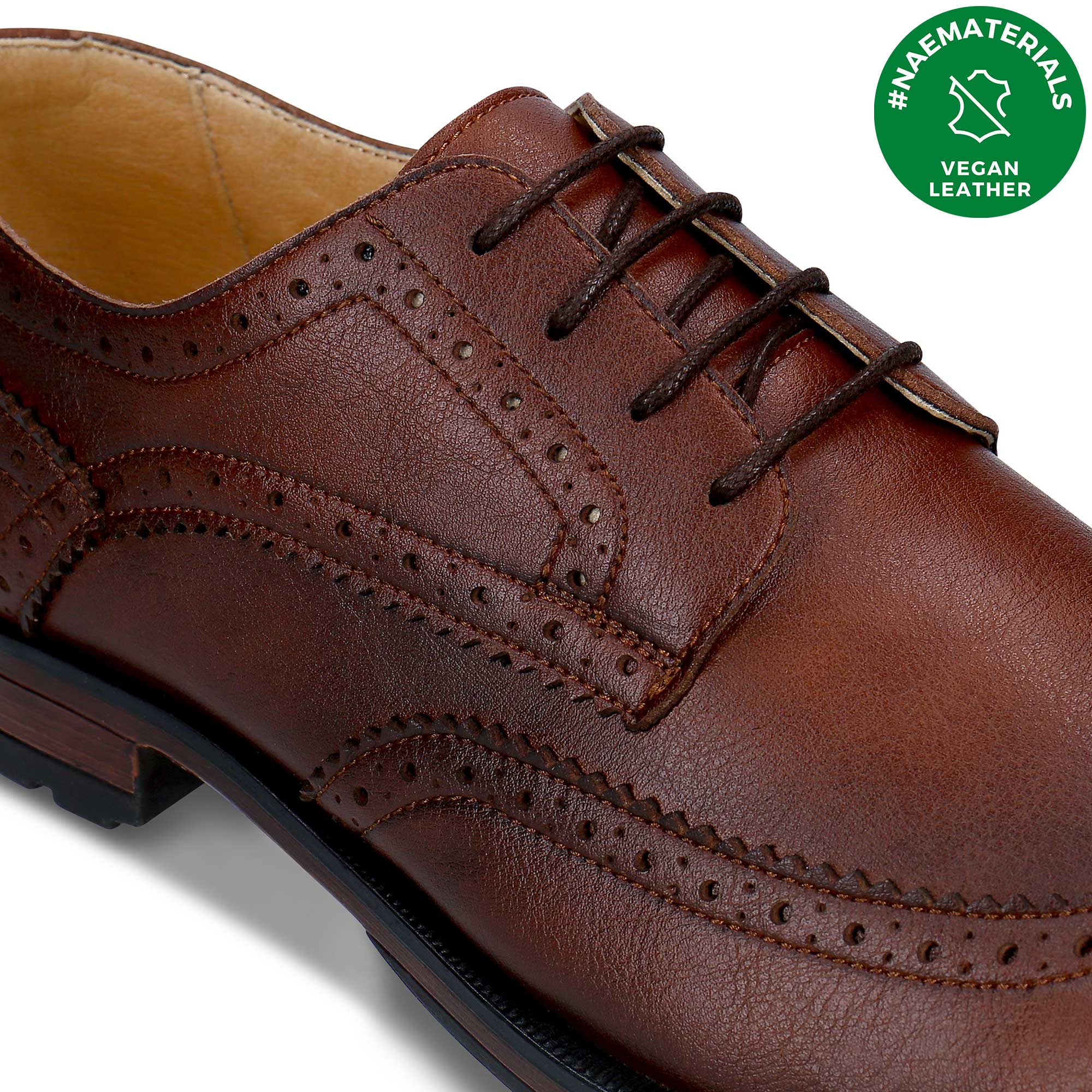 Explore Siro Black, men’s dress vegan shoes epitomizing elegance with a brogue wing-tip design, crafted from high-quality vegan leather—a sustainable, cruelty-free, and lightweight material. These classic dress shoes showcase a refined pattern, featuring brogue perforations and a wing-tip toe, ideal for office and formal occasions. Hypoallergenic and toxin-free, they ensure breathability, combat foot sweat, and resist odors with a moisture-wicking, padded footbed offering arch support for blister-free wear.