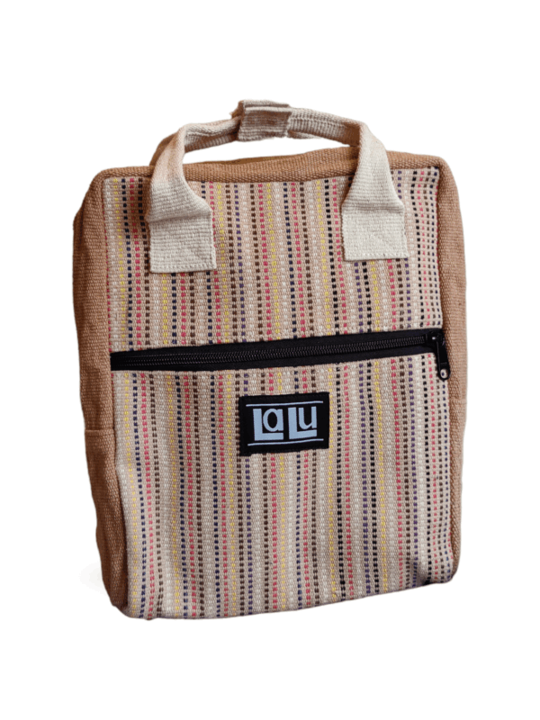 Introducing our Ujala backpack: a stylish and versatile design that can be carried on your back or in your hand. Crafted from premium organic cotton and lined multiple times, it offers a sturdy yet comfortable feel. Handmade with unique, colorful fabrics, this backpack is truly one-of-a-kind. Adjustable straps and zippered compartments ensure optimal comfort and organization, while the plastic-free construction makes it the perfect conscious choice for your daily adventures.