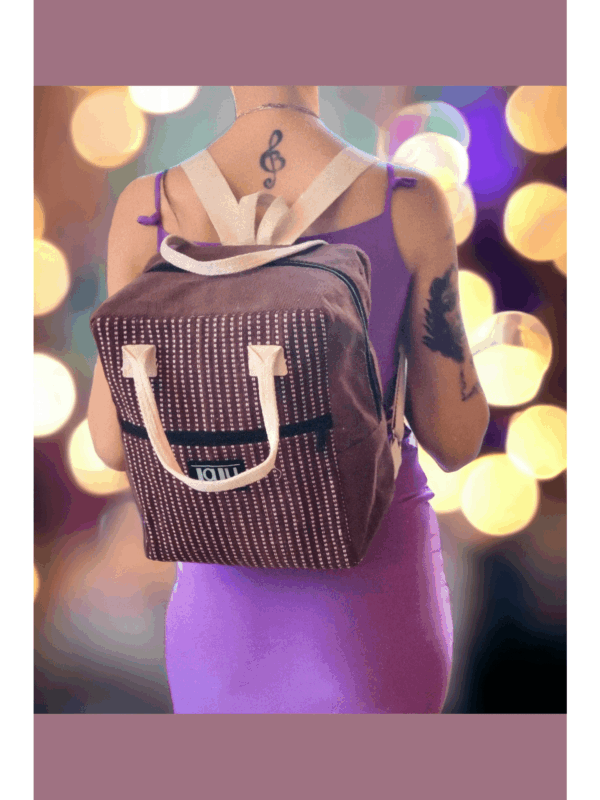 Introducing our Ujala backpack: a stylish and versatile design that can be carried on your back or in your hand. Crafted from premium organic cotton and lined multiple times, it offers a sturdy yet comfortable feel. Handmade with unique, colorful fabrics, this backpack is truly one-of-a-kind. Adjustable straps and zippered compartments ensure optimal comfort and organization, while the plastic-free construction makes it the perfect conscious choice for your daily adventures.