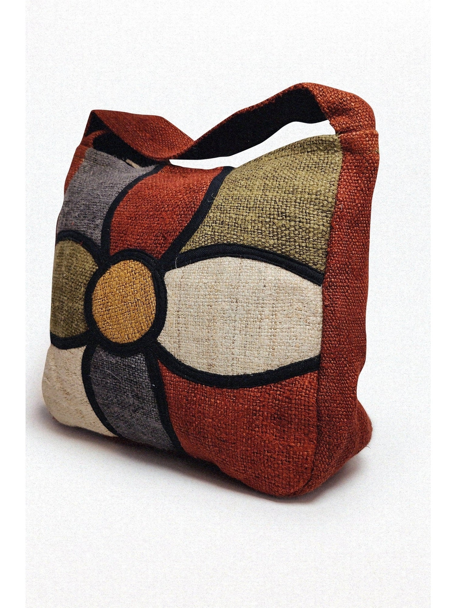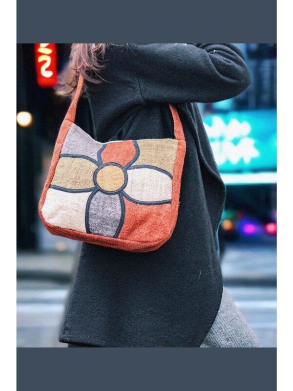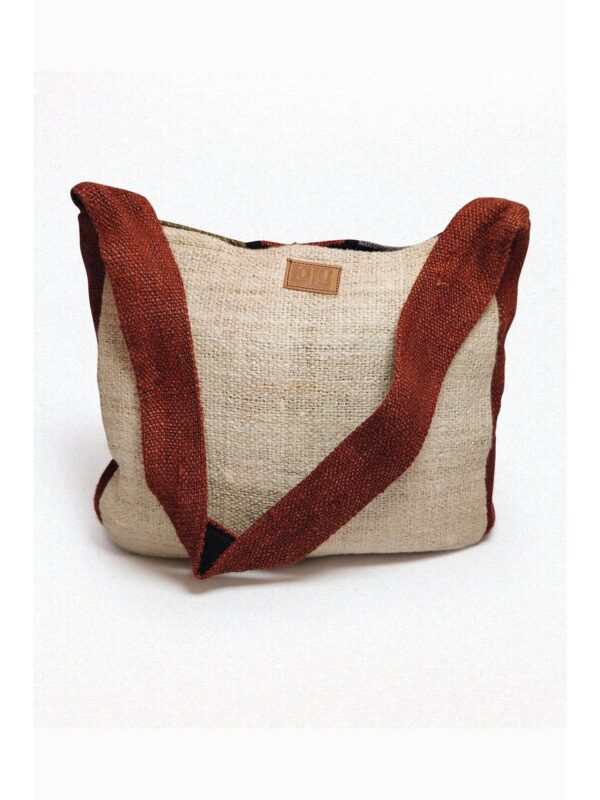 Uma is a handbag made of organic hemp. The bag has warm earthy tones of which the order varies per bag. Each bag is lovingly handmade. It is fully lined and has an extra compartment with zipper on the inside. The bag itself can also be closed by zipper. There is a handy compartment placed on the back of the bag to keep your valuables safe.