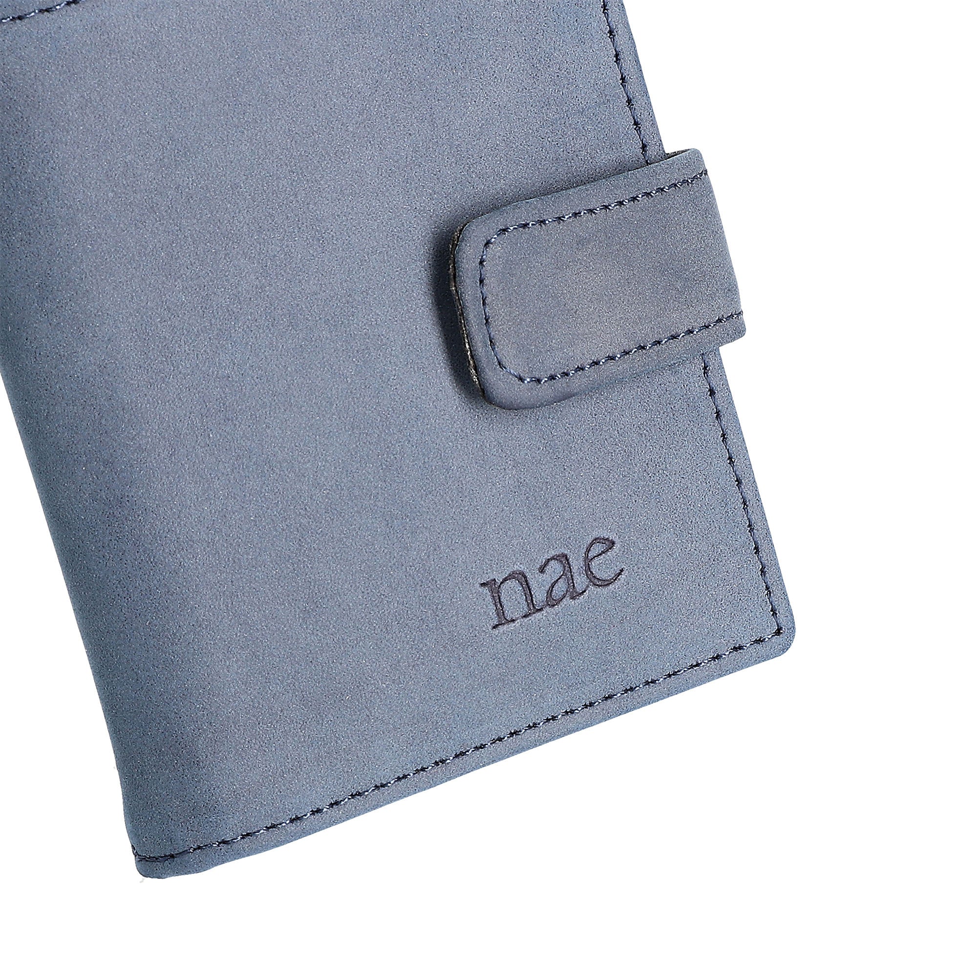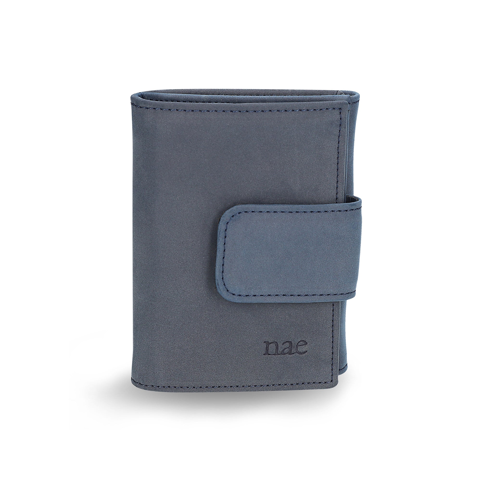 Shop online Vene Blue, the women’s booklet wallet with a popper fastening made of vegan nobuk: a sustainable, innovative, durable and cruelty free material.