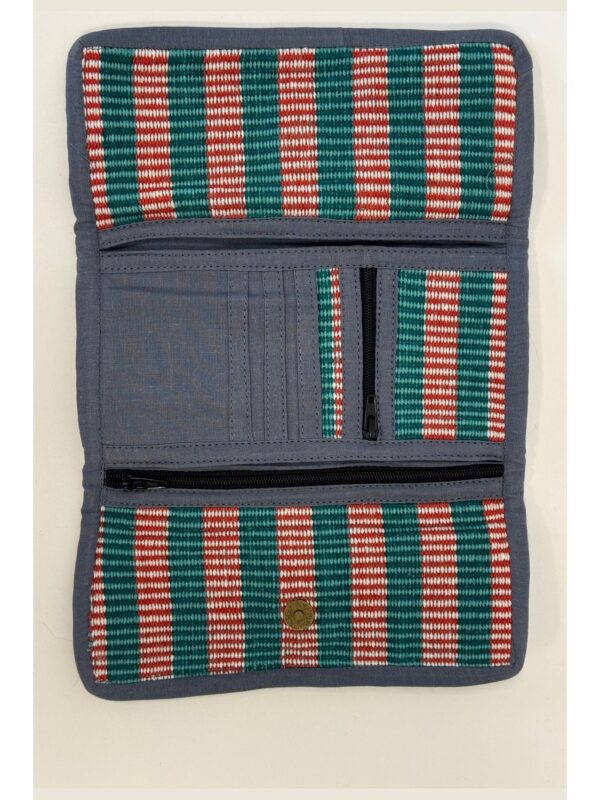 This sustainable wallet is handcrafted in Nepal from 100% organic cotton, with respect for both nature and local artisans. The compact design provides ample space for cards, coins, and bills, while the lightweight and soft material ensures a natural look and feel. Thanks to Fair Trade production, a fair reward is guaranteed for the makers, contributing to the development of local communities. Perfect for anyone who wants to live both eco-conscious and stylishly!”